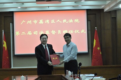 (荔湾区法院领导与全体司法监督员合影,前排左六为单金超律师)